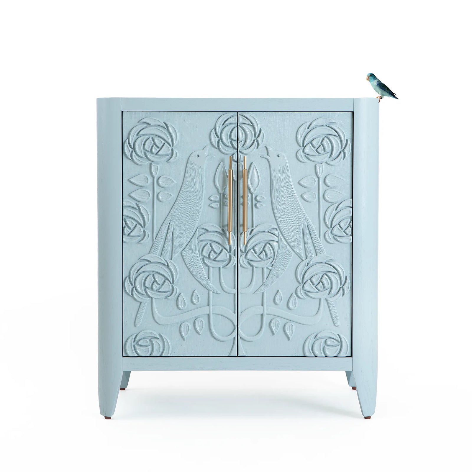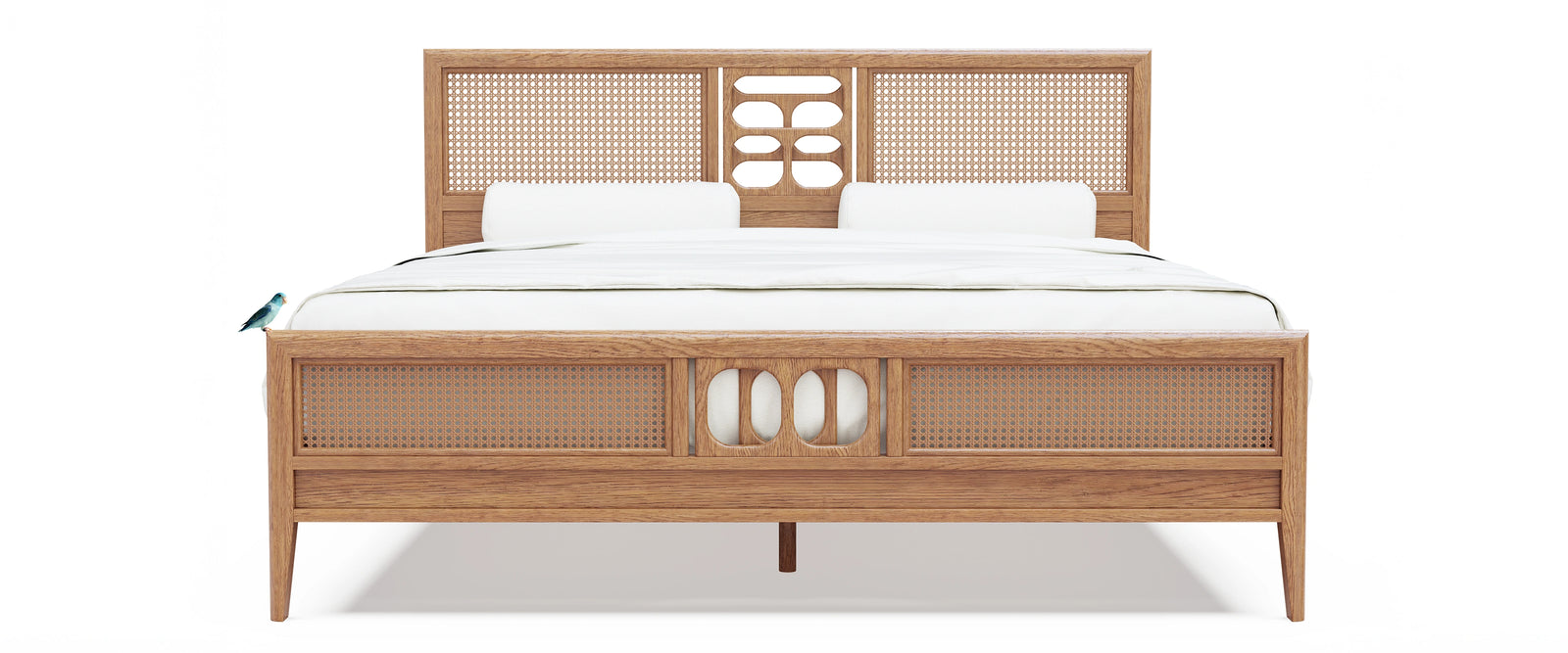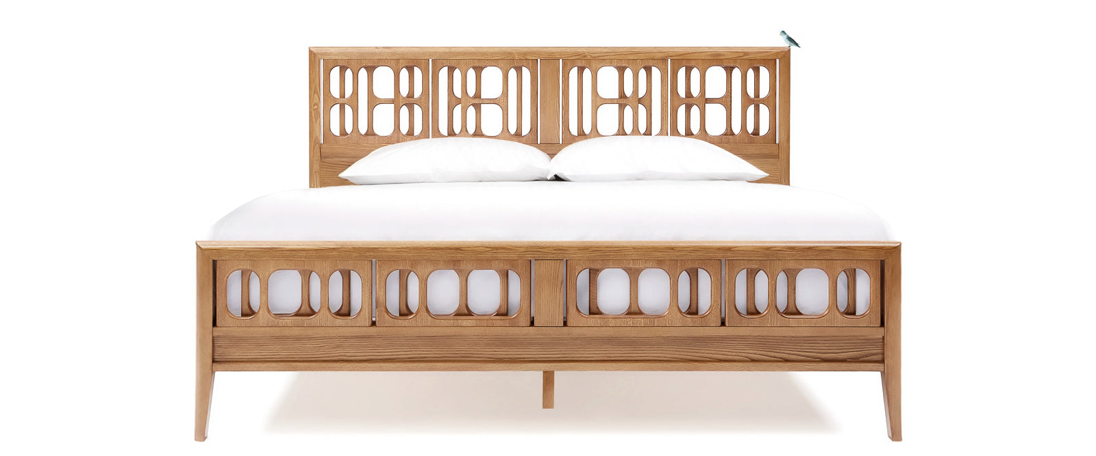 Offered in a low footboard design, the Paloma Bed features a taller headboard to showcase its sculpted panels of doves and foliage. Rooted in the modernist movements of the 1930s, it blends minimalist form with decorative detail—drawing from the overlapping influences of Art Deco, Art Nouveau, and the Arts and Crafts tradition.