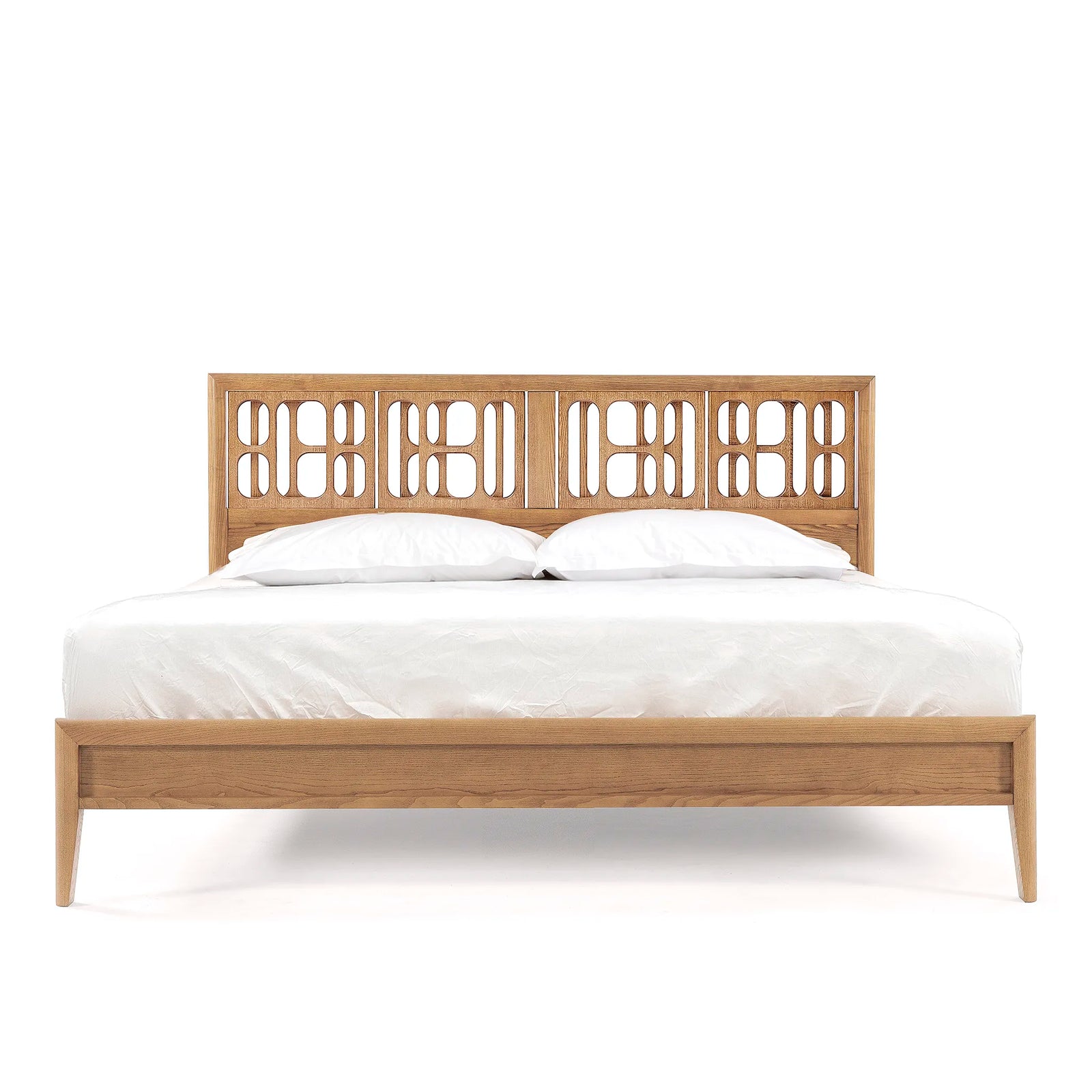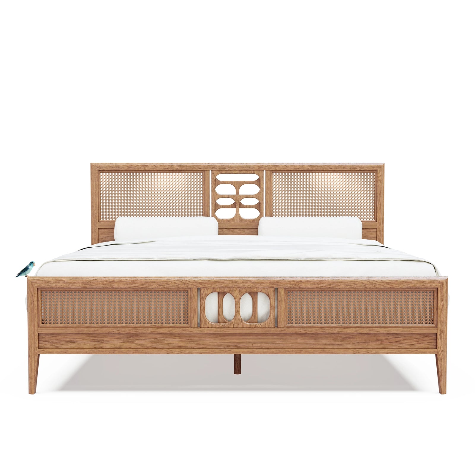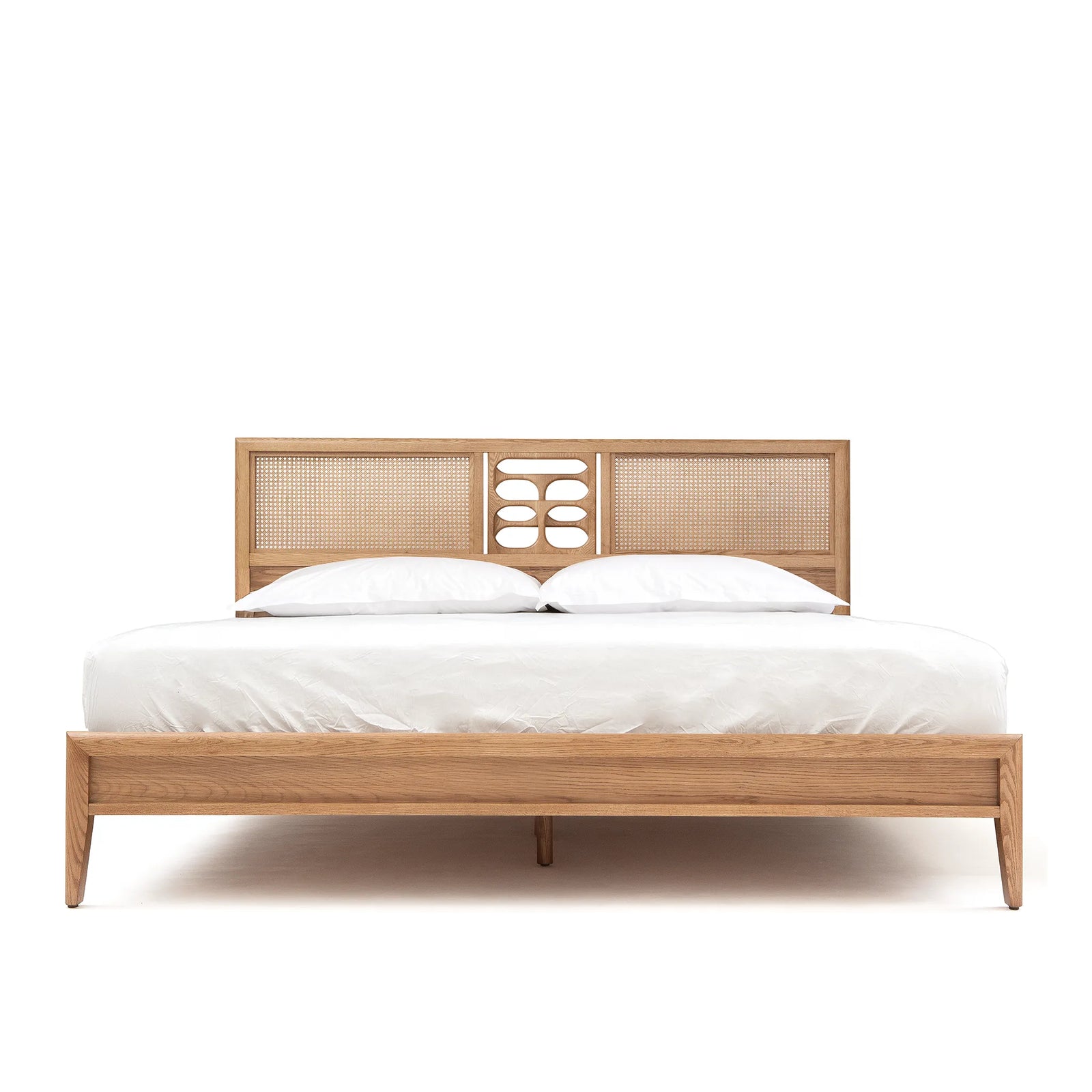 St. Lucia Bed – Sculpted medallion with natural cane rattan. Inspired by the golden age of modernist escape.